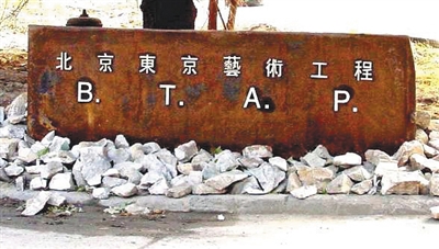 在靠近尤伦斯艺术中心的一棵树下,一个铁铸的牌子上写着“北京东京艺术工程B.T.A.P.”,这是798第一块地域意义上的牌子。2002年北京东京艺术工程开幕的时候,由黄锐等艺术家筹资所立。