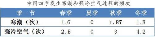 中国四季发生寒潮和强冷空气过程的频次 图片数据来源:国家气候中心