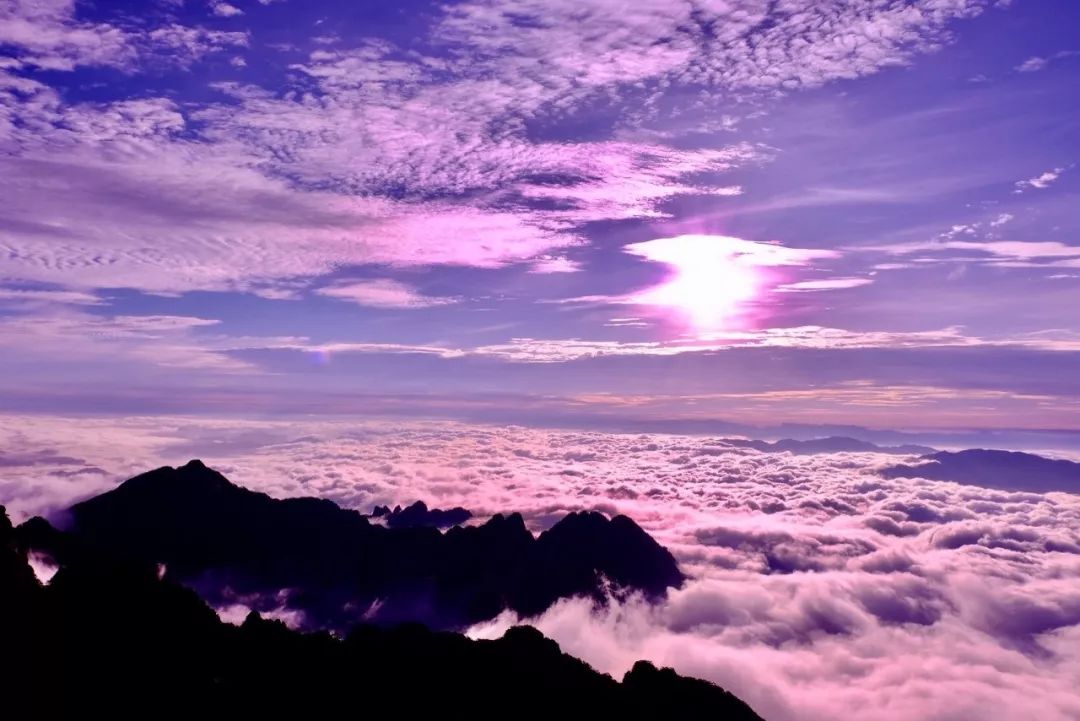 2018-09-18,黄山光明顶。朝霞映照下的云海,我猜那里住着神仙。作者:桃李杏春风