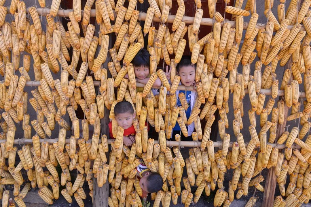 2018-10-06,三明市尤溪县。三明市尤溪县洋中镇的桂峰村举办晒秋节,小朋友们在黄黄的玉米堆中玩耍。作者:旺