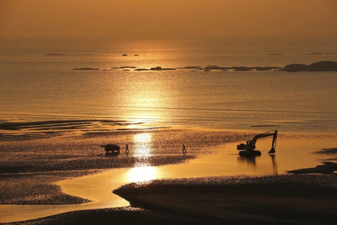 2018-12-22,乳山银滩。清晨太阳刚刚升起,海滩已经忙碌起来,最美劳动者。作者:阿伦(震)