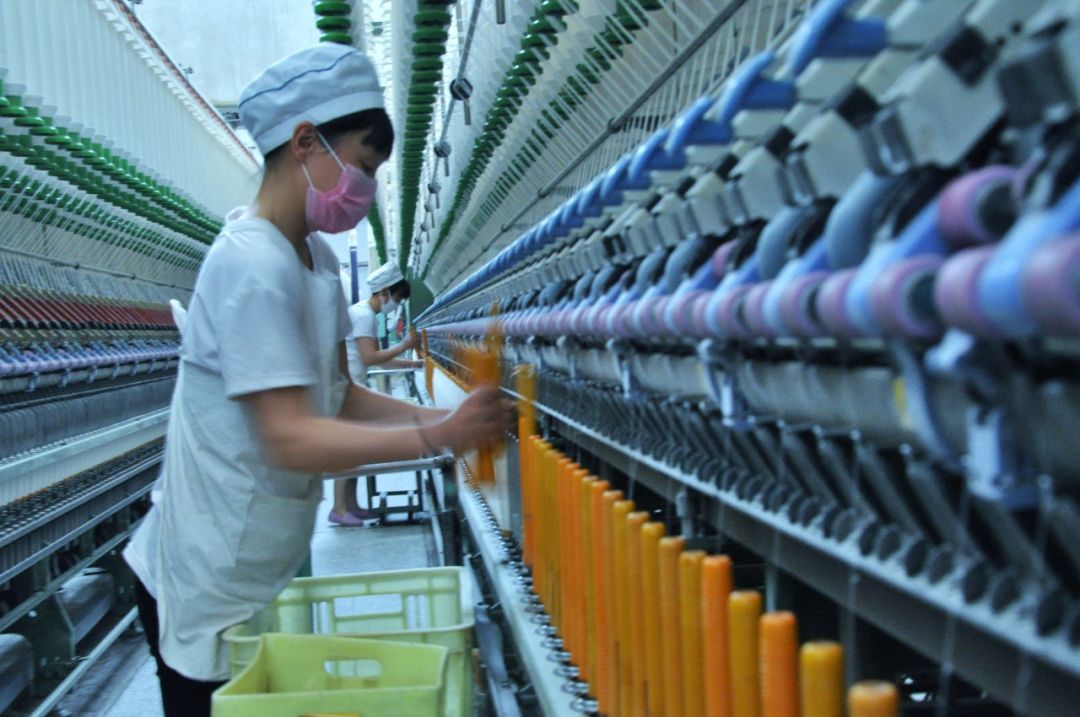 2018-03-28,河南省禹州市纺织厂。美丽的纺织女工,工作时巧手如梭。作者:宜家