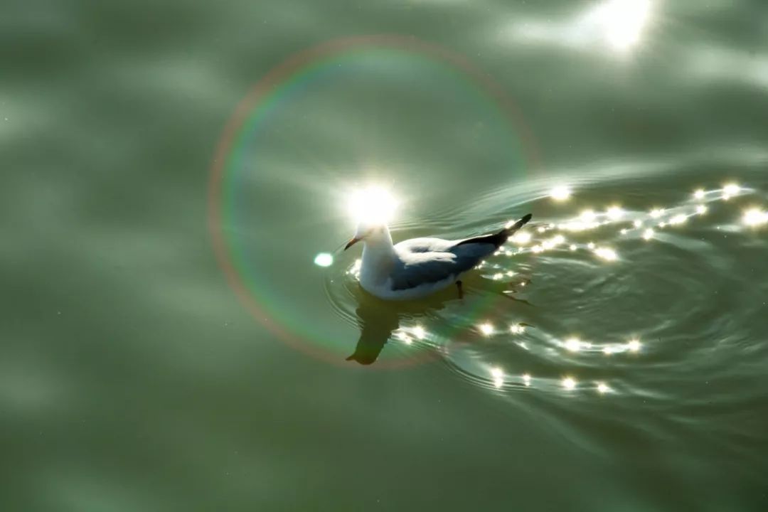 2018-01-13,山东威海。在海边拍摄海鸟的时候,因为光线和角度,拍到这张照片,海鸟犹如戴上了金灿灿的皇冠一般。作者:二师兄的厨房