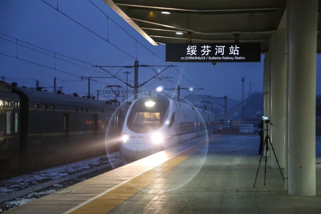2018-12-25,黑龙江省绥芬河市。12月25日6时31分,随着D7961次列车驶进黑龙江省最大的对俄口岸绥芬河站,绥芬河口岸迎来了期盼已久的动车时代。作者:石头