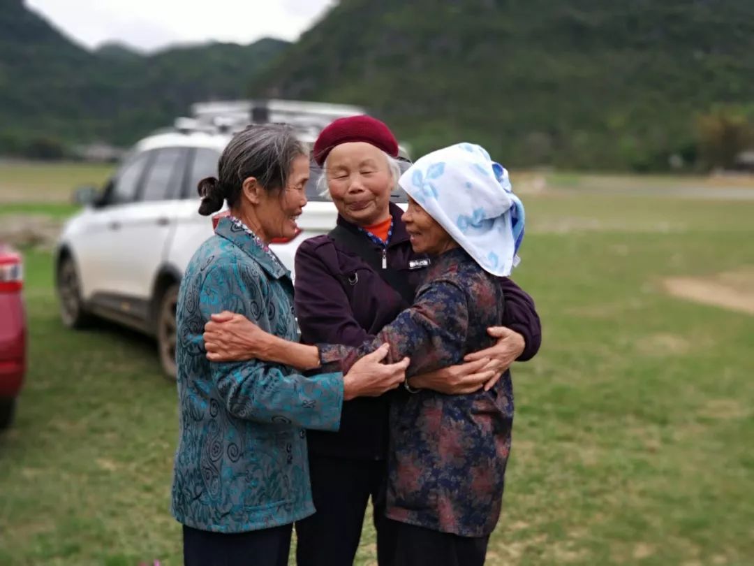 2018-04-06,广西百色。几个老表姐妹,在嫁出家乡数十年后,因扫墓第一次重聚,平均年龄70岁的三人,激动地相拥,有说不完的话!作者:夏木