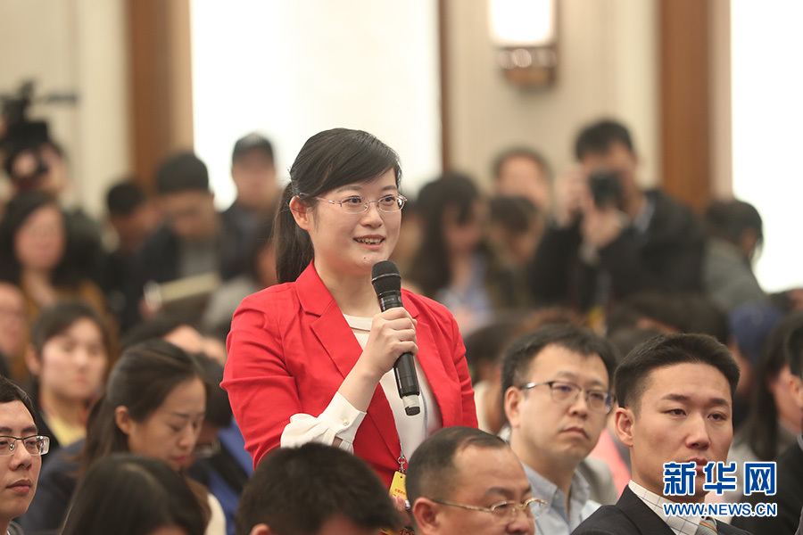 全国政协十三届一次会议新闻发布会3月2日16:30在人民大会堂一层新闻发布厅召开,大会新闻发言人王国庆向中外媒体介绍本次大会有关情况并回答记者提问。图为人民日报记者提问。新华网/中国政府网 曲植 摄