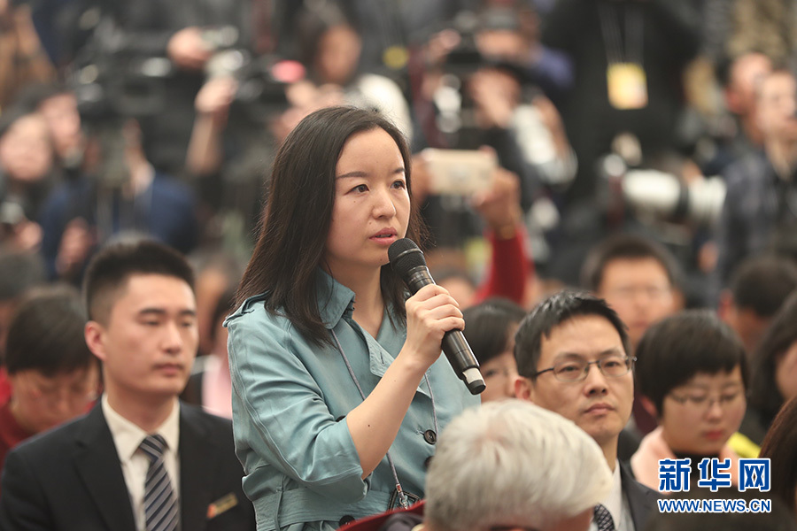 全国政协十三届一次会议新闻发布会3月2日16:30在人民大会堂一层新闻发布厅召开,大会新闻发言人王国庆向中外媒体介绍本次大会有关情况并回答记者提问。图为人民政协报记者提问。新华网/中国政府网 曲植 摄