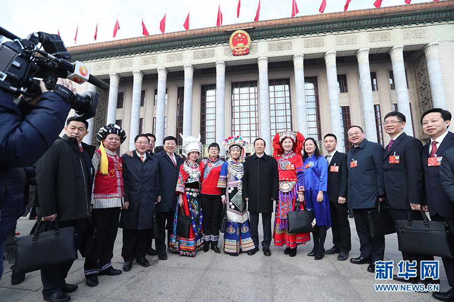 3月5日,第十三届全国人民代表大会第一次会议在北京人民大会堂开幕。这是代表们在人民大会堂前合影。 新华网/中国政府网 翟子赫摄