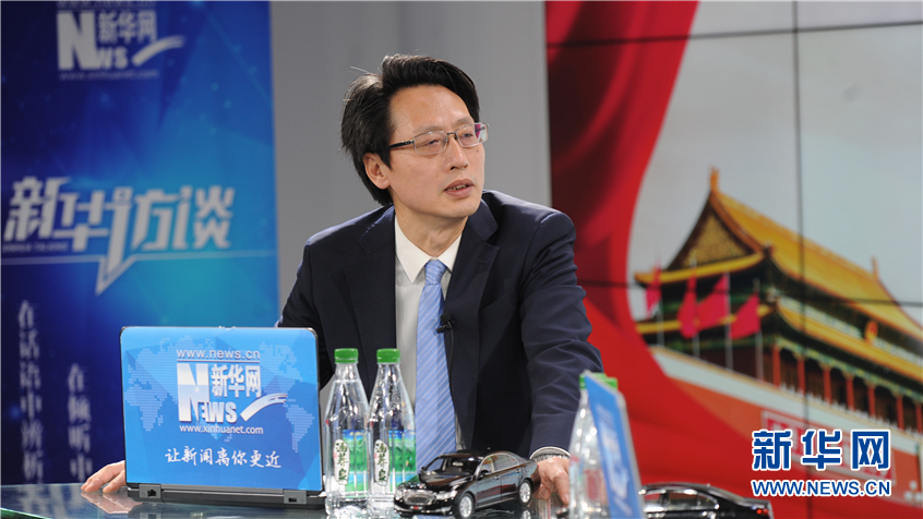 图为,中国宏观经济研究院常务副院长王昌林做客新华网2018全国两会特别访谈“新跨越两会专家讲” 新华网 张斌摄