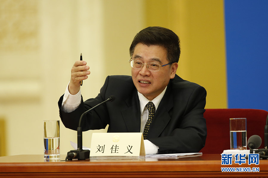 民主党派中央和全国工商联领导人记者会3月6日下午在人民大会堂金色大厅举行,邀请民革中央主席万鄂湘、民盟中央主席丁仲礼、民建中央主席郝明金、民进中央主席蔡达峰、农工党中央主席陈竺、致公党中央主席万钢、九三学社中央主席武维华、台盟中央主席苏辉、全国工商联主席高云龙回答记者提问。图为记者会主持人刘佳义。新华网/中国政府网 翟子赫 摄