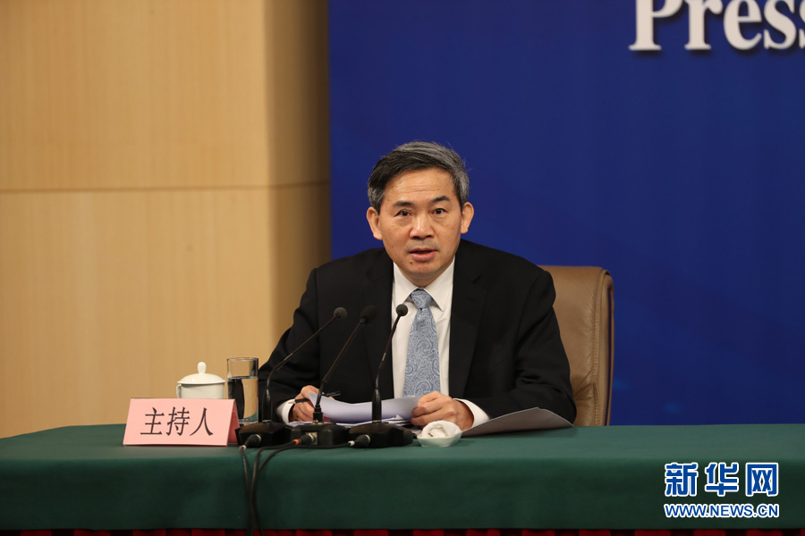 十三届全国人大一次会议新闻中心3月6日上午10时在梅地亚中心多功能厅举行记者会,邀请国家发展和改革委员会主任何立峰、副主任张勇、副主任宁吉喆就“创新和完善宏观调控,推动高质量发展”相关问题回答中外记者提问。图为记者会主持人何绍仁。新华网/中国政府网 陈杰 摄