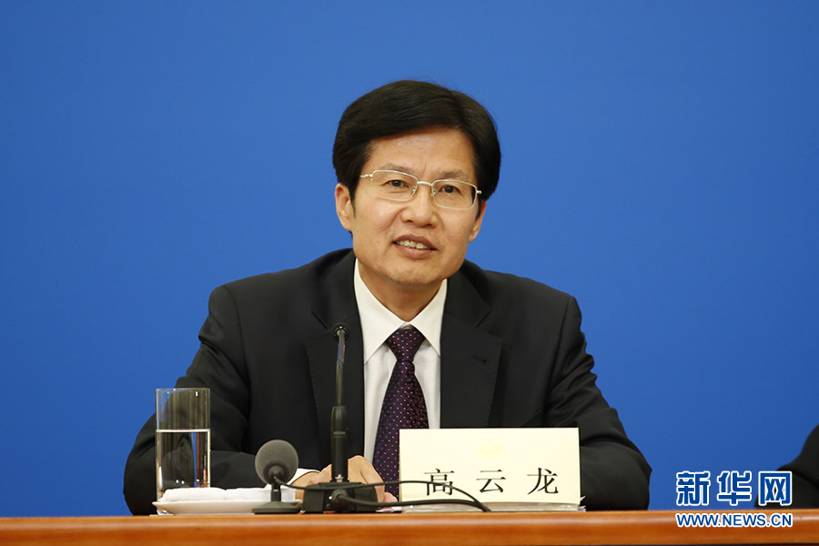 民主党派中央和全国工商联领导人记者会3月6日下午在人民大会堂金色大厅举行,邀请民革中央主席万鄂湘、民盟中央主席丁仲礼、民建中央主席郝明金、民进中央主席蔡达峰、农工党中央主席陈竺、致公党中央主席万钢、九三学社中央主席武维华、台盟中央主席苏辉、全国工商联主席高云龙回答记者提问。图为全国工商联主席高云龙。新华网/中国政府网 陈杰 摄