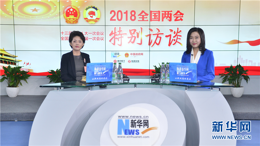 3月7日,全国政协委员、民盟中央常委、民盟吉林省委主委、吉林省旅游发展委员会主任杨安娣(左)做客新华网2018全国两会特别访谈。新华网 李相博摄