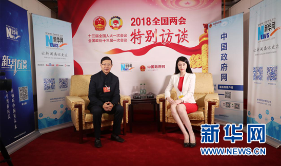3月5日,全国政协委员、红杉资本全球执行合伙人沈南鹏到设在人民大会堂的新华网两会特别访谈演播厅接受专访。新华网记者 王翰林 摄