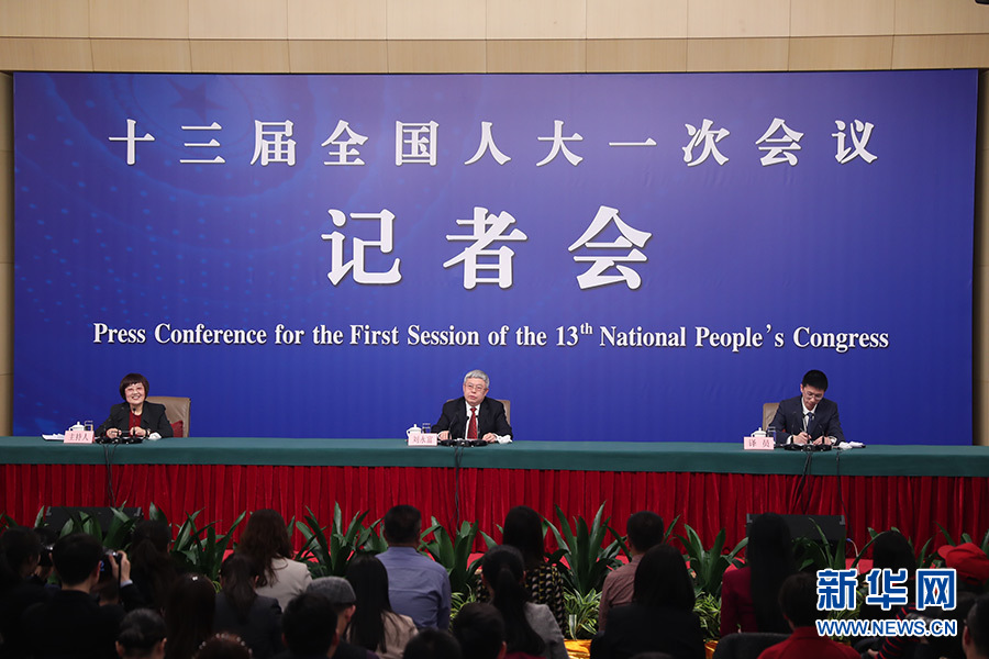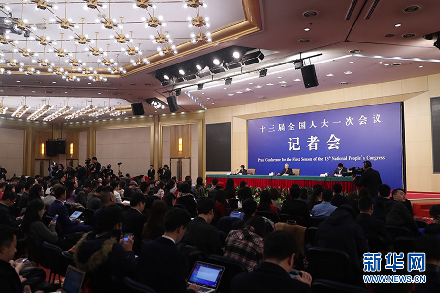十三届全国人大一次会议新闻中心于3月7日在梅地亚中心多功能厅举行记者会,邀请国务院扶贫办主任刘永富就“打好精准脱贫攻坚战”的相关问题回答中外记者的提问。图为记者会现场。新华网/中国政府网 陈杰 摄