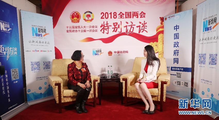 3月5日,全国人大代表、河北蔚县周淑英剪纸艺术馆馆长周淑英到设在人民大会堂的新华网两会特别访谈演播厅接受专访。新华网 王翰林 摄
