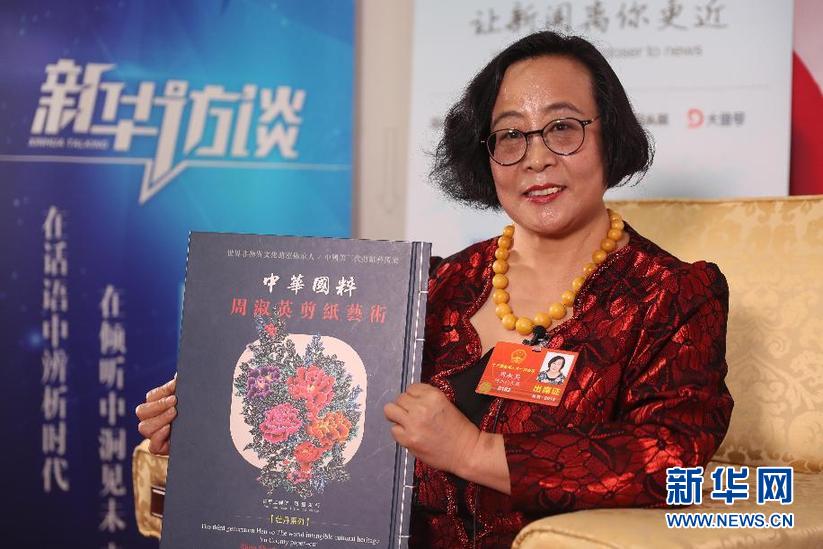 全国人大代表、河北蔚县周淑英剪纸艺术馆馆长周淑英。新华网 王翰林 摄