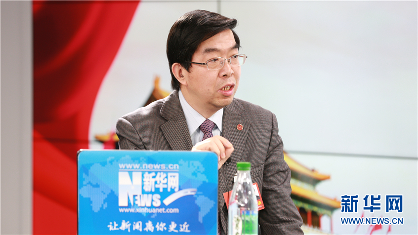 3月8日,全国政协委员、民进中央副主席、上海市政协副主席、上海交通大学副校长黄震做客新华网2018全国两会特别访谈。新华网 杨锘摄