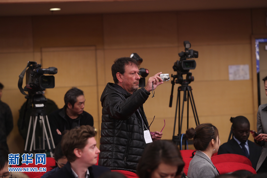 十三届全国人大一次会议新闻中心3月8日上午10时在梅地亚中心多功能厅举行记者会,邀请外交部部长王毅就“中国外交政策和对外关系”回答中外记者提问。图为记者在现场采访。 新华网/中国政府网 陈杰 摄