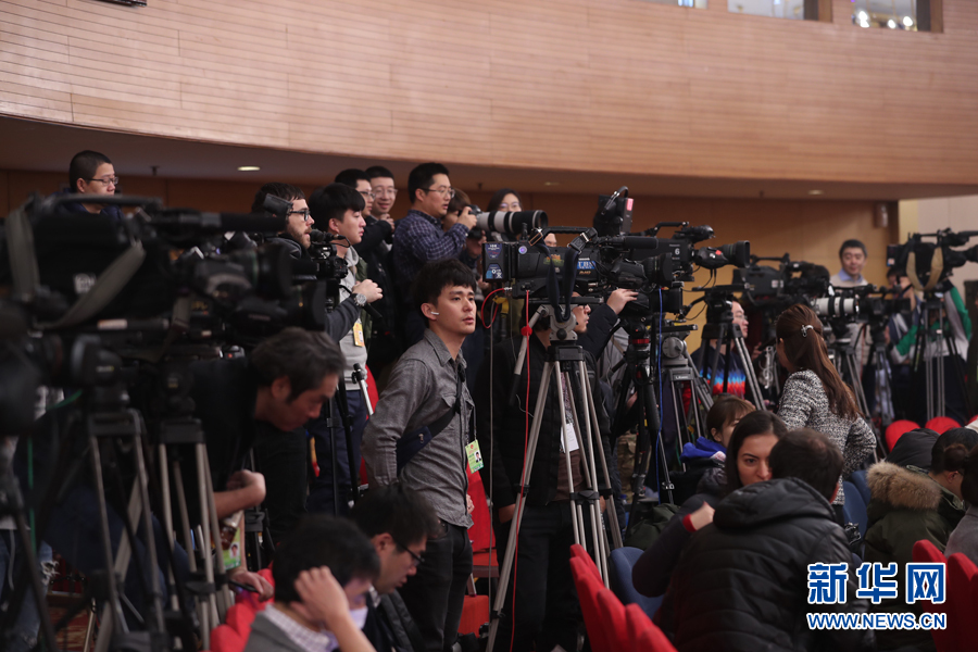 十三届全国人大一次会议新闻中心3月8日上午10时在梅地亚中心多功能厅举行记者会,邀请外交部部长王毅就“中国外交政策和对外关系”回答中外记者提问。图为记者在现场。 新华网/中国政府网 陈杰 摄