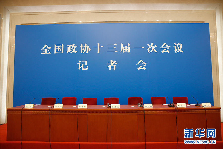 全国政协十三届一次会议3月8日15:00在人民大会堂新闻发布厅举行第二场记者会,邀请中央财经领导小组办公室副主任杨伟民,中国进出口银行董事长、党委书记胡晓炼,农业部原副部长陈晓华,全国工商联副主席、清华大学经济管理学院院长钱颖一,中国中化集团有限公司党组书记、董事长宁高宁就推动经济高质量发展回答记者提问。图为记者会现场。新华网/中国政府网 陈杰 摄