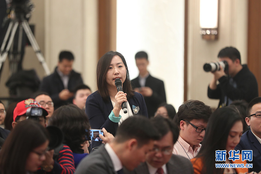 全国政协十三届一次会议3月8日15:00在人民大会堂新闻发布厅举行第二场记者会,邀请中央财经领导小组办公室副主任杨伟民,中国进出口银行董事长、党委书记胡晓炼,农业部原副部长陈晓华,全国工商联副主席、清华大学经济管理学院院长钱颖一,中国中化集团有限公司党组书记、董事长宁高宁就推动经济高质量发展回答记者提问。图为人民日报记者提问。新华网/中国政府网 翟子赫 摄