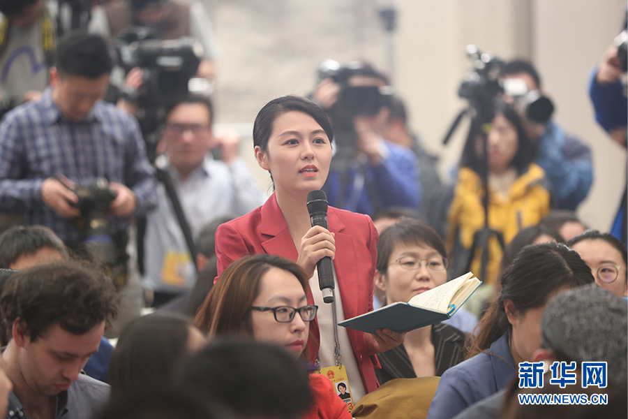 全国政协十三届一次会议3月8日15:00在人民大会堂新闻发布厅举行第二场记者会,邀请中央财经领导小组办公室副主任杨伟民,中国进出口银行董事长、党委书记胡晓炼,农业部原副部长陈晓华,全国工商联副主席、清华大学经济管理学院院长钱颖一,中国中化集团有限公司党组书记、董事长宁高宁就推动经济高质量发展回答记者提问。图为中央电视台记者提问。新华网/中国政府网 翟子赫 摄