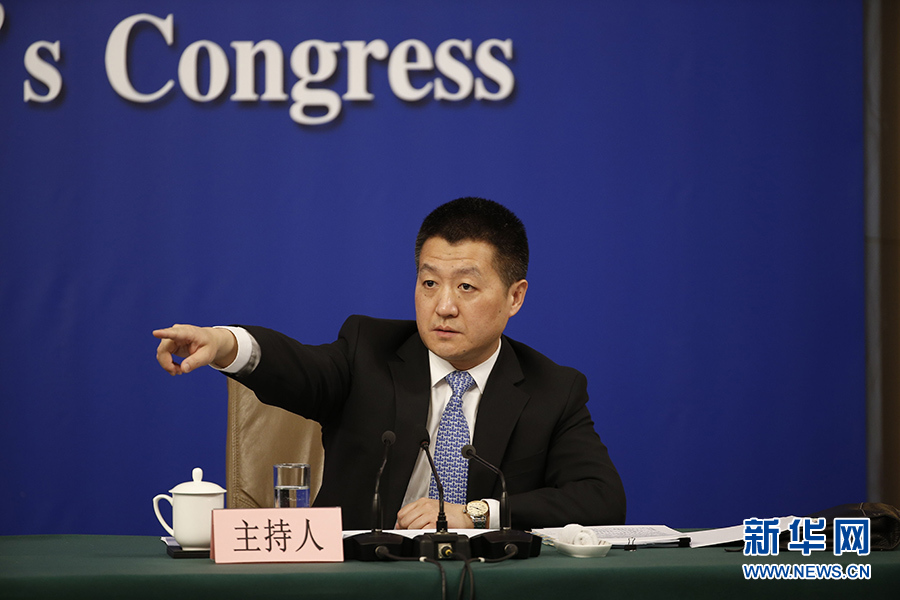 十三届全国人大一次会议新闻中心于3月8日上午10时在梅地亚中心多功能厅举行记者会,邀请外交部部长王毅就“中国外交政策和对外关系”回答中外记者提问。图为记者会主持人陆慷。新华网/中国政府网陈杰 摄