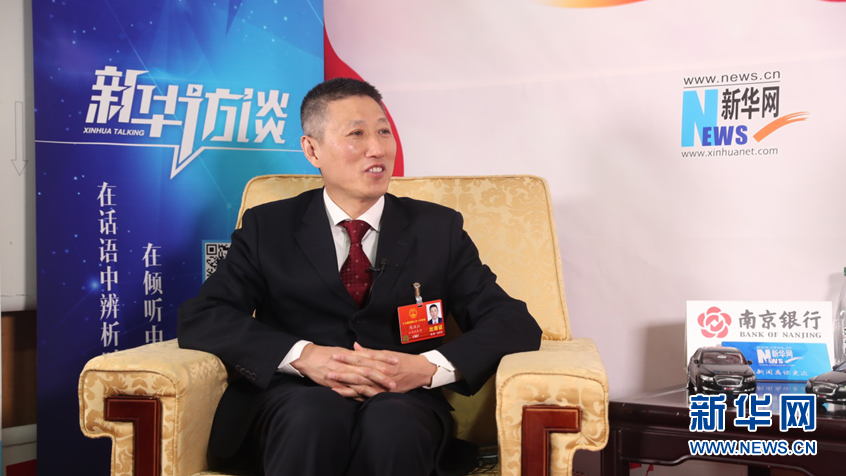 图为全国人大代表、烟台张裕集团有限公司党委书记、董事长周洪江在接受新华网记者采访 新华网郝广鹏摄