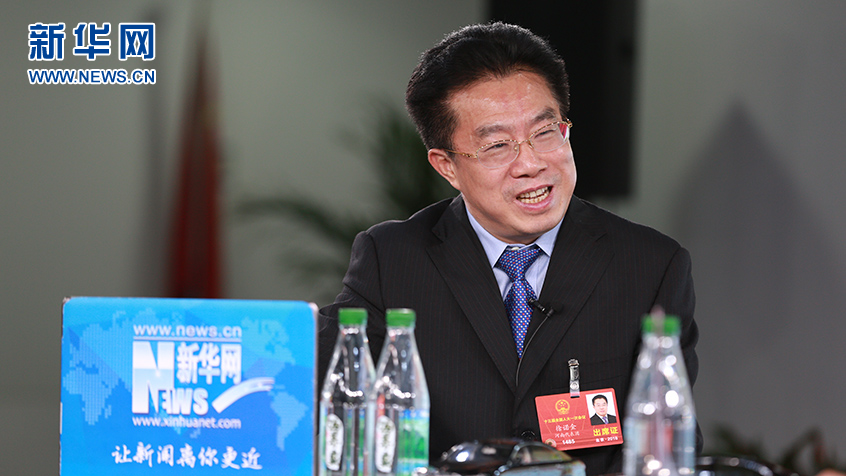全国人大代表、中国人民银行郑州中心支行行长徐诺金做客新华网2018全国两会特别访谈。新华网杨锘摄