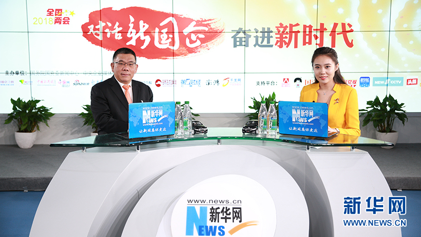 全国人大代表、广西柳工集团有限公司董事长曾光安(左)做客国资委和新华网共同推出的“对话新国企·奋进新时代”系列访谈。新华网 杨锘摄