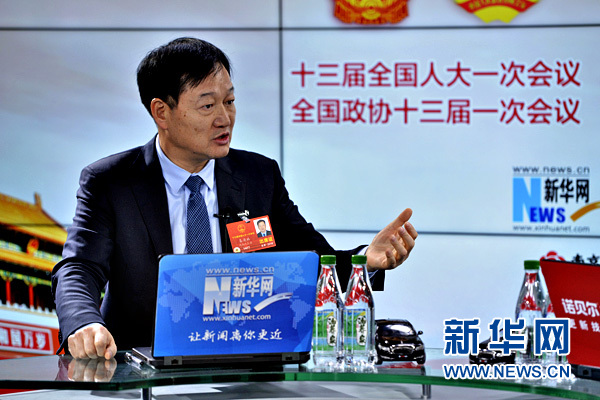 全国人大代表、牧原食品股份有限公司董事长秦英林做客新华网2018全国两会特别访谈 新华网 李相博摄