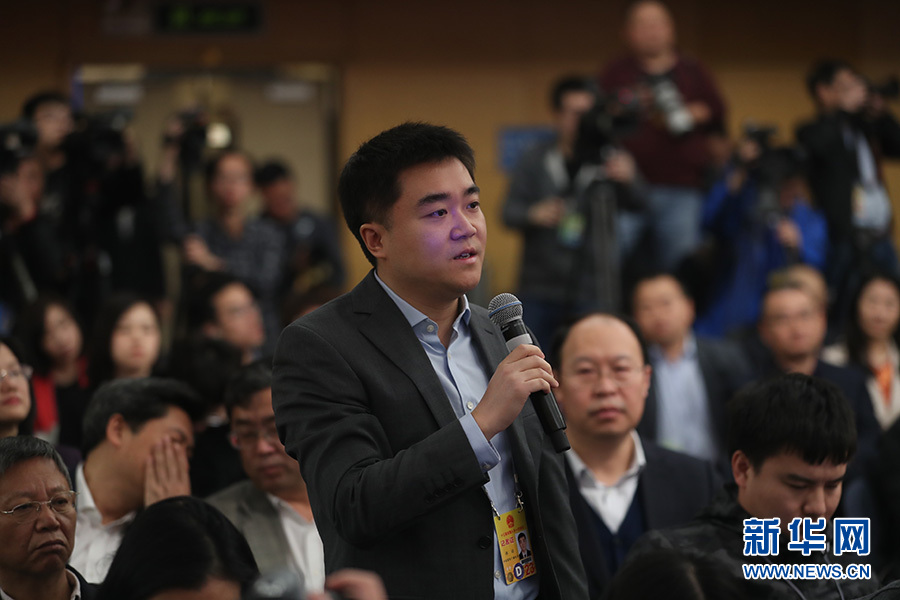 十三届全国人大一次会议新闻中心3月10日上午10时45分在梅地亚中心多功能厅举行记者会,邀请科技部部长万钢、政策法规与监督司司长贺德方、创新发展司司长许倞就“加快建设创新型国家”相关问题回答中外记者提问。图为中国国际广播电台记者提问。 新华网/中国政府网 陈杰 摄