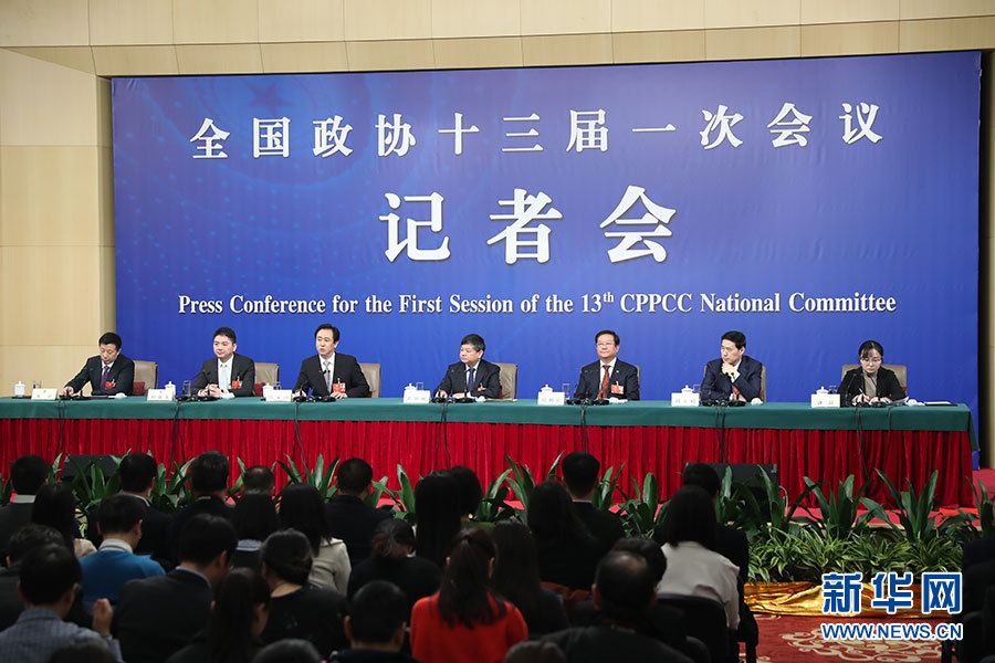 3月10日8时45分,全国政协十三届一次会议将在梅地亚中心多功能厅举行记者会,邀请5位全国政协委员就“提高保障和改善民生水平”回答记者提问。图为记者会主席台。新华网/中国政府网 翟子赫 摄