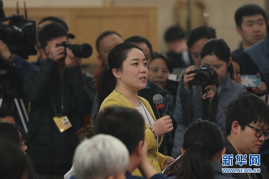 3月10日8时45分,全国政协十三届一次会议在梅地亚中心多功能厅举行记者会,邀请5位全国政协委员就“提高保障和改善民生水平”回答记者提问。图为内蒙古广播电视台记者提问。新华网/中国政府网 翟子赫 摄