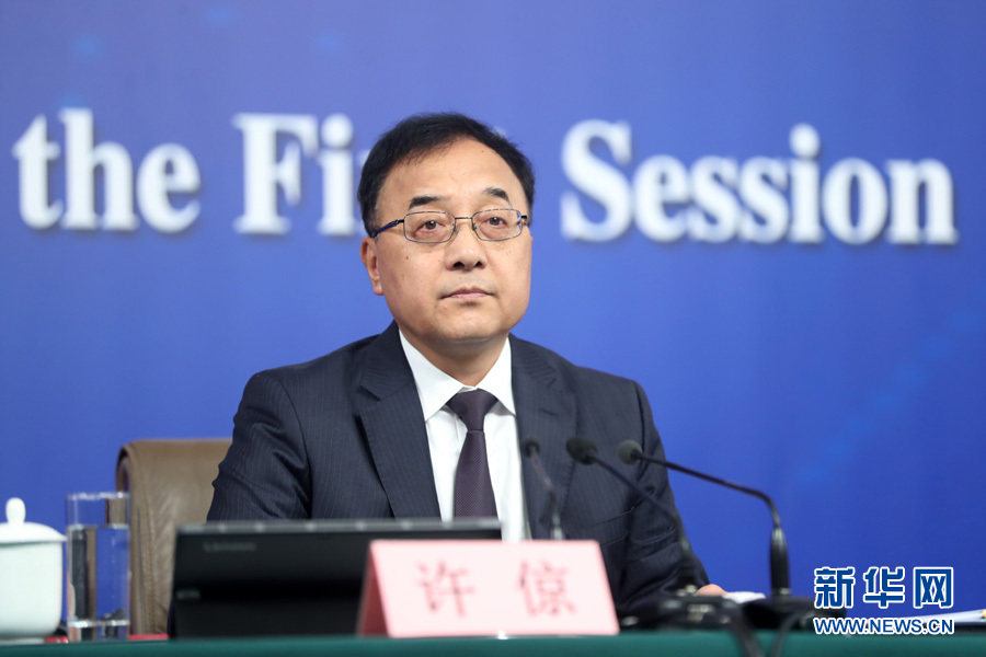 十三届全国人大一次会议新闻中心于10日上午10时45分在梅地亚中心多功能厅举行记者会,邀请科技部部长万钢、政策法规与监督司司长贺德方、创新发展司司长许倞就“加快建设创新型国家”相关问题回答中外记者提问。图为科技部创新发展司司长许倞。新华网/中国政府网 翟子赫 摄