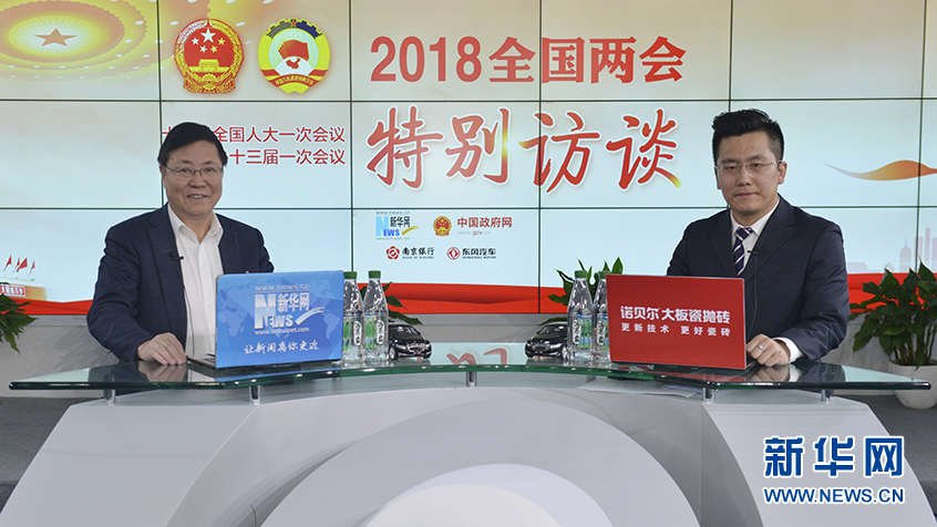 3月11日,全国政协委员,北京同仁医院眼科中心主任、全国防盲技术指导组组长王宁利(左)做客新华网2018全国两会特别访谈。新华网 李相博摄