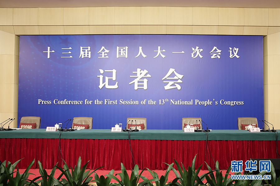 十三届全国人大一次会议新闻中心3月11日10时在梅地亚中心多功能厅举行记者会,邀请商务部部长钟山、副部长兼国际贸易谈判副代表王受文、副部长钱克明就“推动形成全面开放新格局 推动商务事业高质量发展”相关问题回答中外记者提问。图为记者会现场。新华网/中国政府网 陈杰 摄