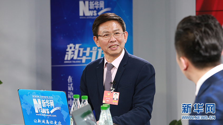 12日,全国政协委员、华坚集团董事长张华荣做客新华网2018全国两会特别访谈。新华网 杨锘摄