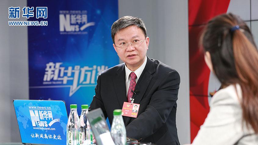 图为全国政协委员、中国科学院院士、兰州大学校长严纯华做客新华网2018全国两会特别访谈。新华网杨锘摄