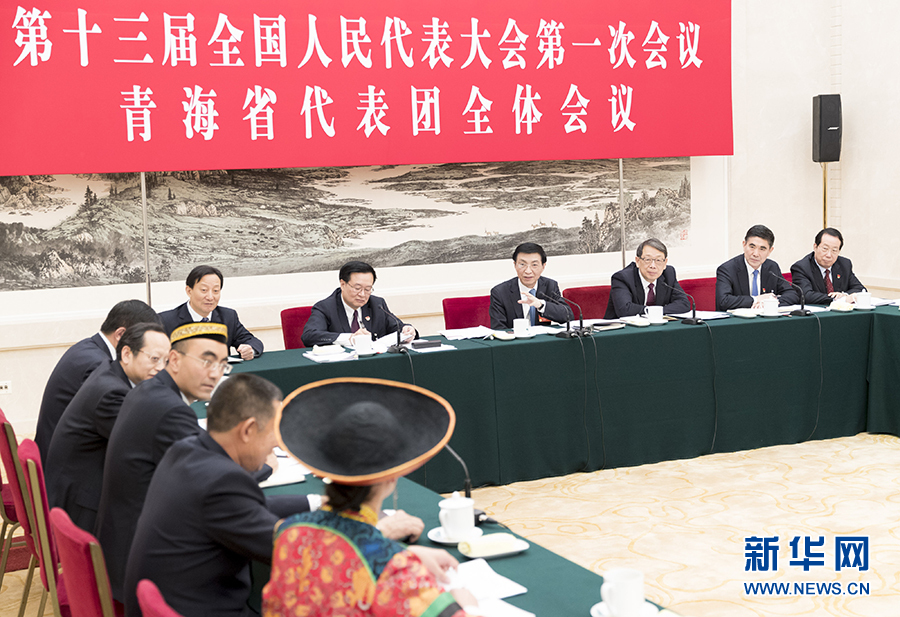 3月12日,中共中央政治局常委、中央书记处书记王沪宁参加十三届全国人大一次会议青海代表团的审议。