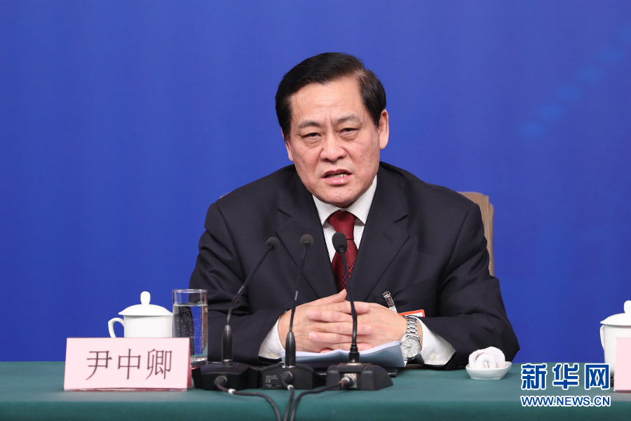 十三届全国人大一次会议新闻中心于3月12日15时在梅地亚中心多功能厅举行记者会,邀请十二届全国人大财经委副主任委员尹中卿、教科文卫委副主任委员吴恒、环资委副主任委员袁驷、内司委委员郑功成,全国人大常委会预算工委副主任刘修文、常委会办公厅秘书局巡视员傅文杰就“人大监督工作”相关问题回答中外记者提问。图为十二届全国人大财经委副主任委员尹中卿回答记者提问。新华网/中国政府网 陈杰 摄