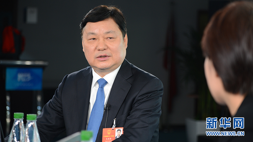 全国人大代表,中国移动湖北公司党委书记、董事长、总经理范秉衡做客新华网2018全国两会特别访谈。新华网 杨濛摄