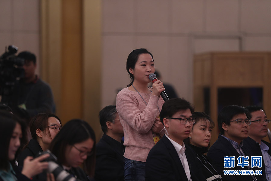 3月12日,十三届全国人大一次会议新闻中心在梅地亚中心多功能厅举行记者会,邀请十二届全国人大内司委副主任委员王胜明、财经委副主任委员乌日图、教科文卫委副主任委员吴恒、环资委委员吕彩霞,全国人大常委会法工委副主任王超英、副主任许安标就“人大立法工作”相关问题回答中外记者提问。图为光明日报记者提问。新华网/中国政府网 翟子赫 摄
