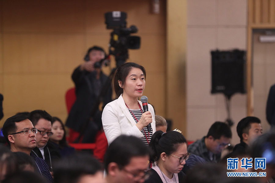 3月12日,十三届全国人大一次会议新闻中心在梅地亚中心多功能厅举行记者会,邀请十二届全国人大内司委副主任委员王胜明、财经委副主任委员乌日图、教科文卫委副主任委员吴恒、环资委委员吕彩霞,全国人大常委会法工委副主任王超英、副主任许安标就“人大立法工作”相关问题回答中外记者提问。图为中央电视台记者提问。新华网/中国政府网 翟子赫 摄