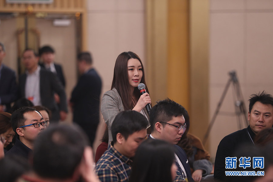3月12日,十三届全国人大一次会议新闻中心在梅地亚中心多功能厅举行记者会,邀请十二届全国人大内司委副主任委员王胜明、财经委副主任委员乌日图、教科文卫委副主任委员吴恒、环资委委员吕彩霞,全国人大常委会法工委副主任王超英、副主任许安标就“人大立法工作”相关问题回答中外记者提问。图为法制晚报记者提问。新华网/中国政府网 翟子赫 摄