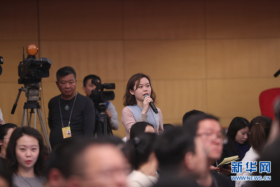 3月12日,十三届全国人大一次会议新闻中心在梅地亚中心多功能厅举行记者会,邀请十二届全国人大内司委副主任委员王胜明、财经委副主任委员乌日图、教科文卫委副主任委员吴恒、环资委委员吕彩霞,全国人大常委会法工委副主任王超英、副主任许安标就“人大立法工作”相关问题回答中外记者提问。图为北京青年报记者提问。新华网/中国政府网 翟子赫 摄