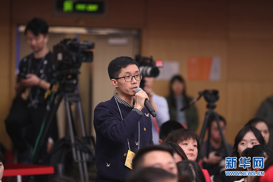3月12日,十三届全国人大一次会议新闻中心在梅地亚中心多功能厅举行记者会,邀请十二届全国人大内司委副主任委员王胜明、财经委副主任委员乌日图、教科文卫委副主任委员吴恒、环资委委员吕彩霞,全国人大常委会法工委副主任王超英、副主任许安标就“人大立法工作”相关问题回答中外记者提问。图为中国青年报记者提问。新华网/中国政府网 翟子赫 摄