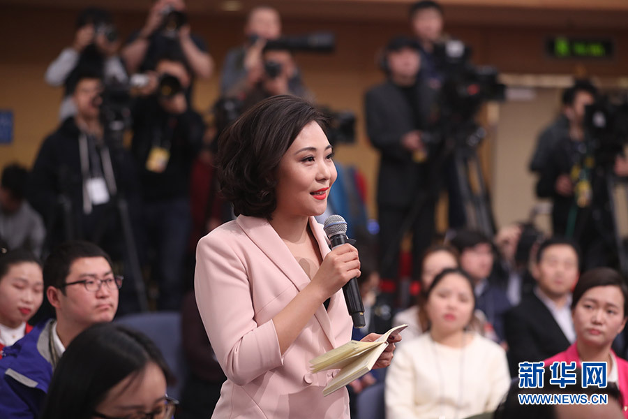 3月12日,十三届全国人大一次会议新闻中心在梅地亚中心多功能厅举行记者会,邀请十二届全国人大财经委副主任委员尹中卿、教科文卫委副主任委员吴恒、环资委副主任委员袁驷、内司委委员郑功成,全国人大常委会预算工委副主任刘修文、常委会办公厅秘书局巡视员傅文杰就“人大监督工作”相关问题回答中外记者提问。图为中国国际电视台记者提问。新华网/中国政府网 王健 摄