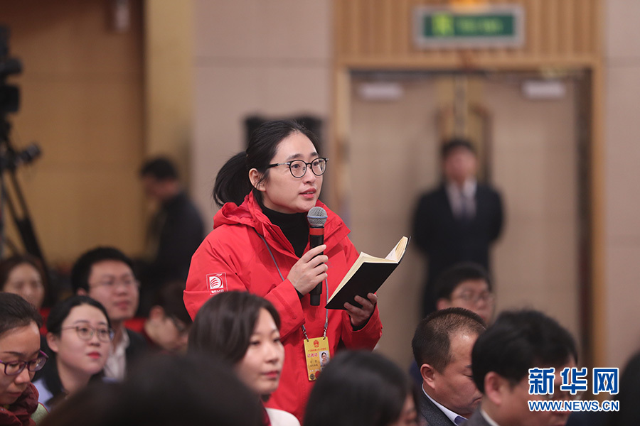 3月12日,十三届全国人大一次会议新闻中心在梅地亚中心多功能厅举行记者会,邀请十二届全国人大财经委副主任委员尹中卿、教科文卫委副主任委员吴恒、环资委副主任委员袁驷、内司委委员郑功成,全国人大常委会预算工委副主任刘修文、常委会办公厅秘书局巡视员傅文杰就“人大监督工作”相关问题回答中外记者提问。图为现代快报记者提问。新华网/中国政府网 王健 摄